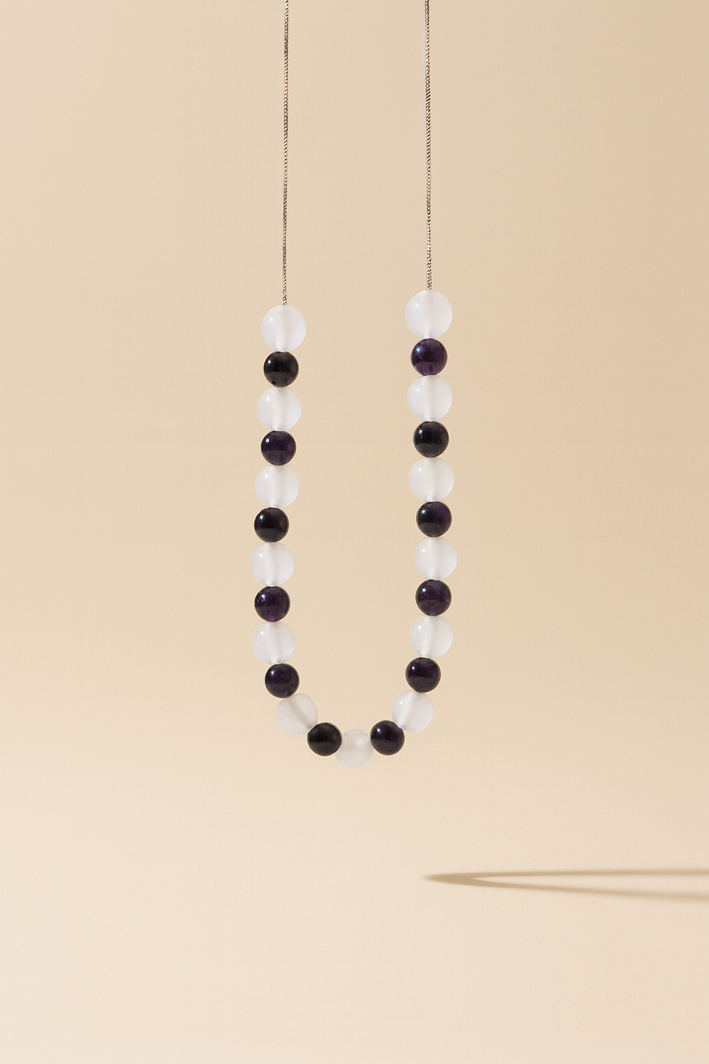 Lanțul fin din argint 925 leagă aceste două lumi, una a clarității, alta a forței interioare, într-o compoziție armonioasă, plină de sens.