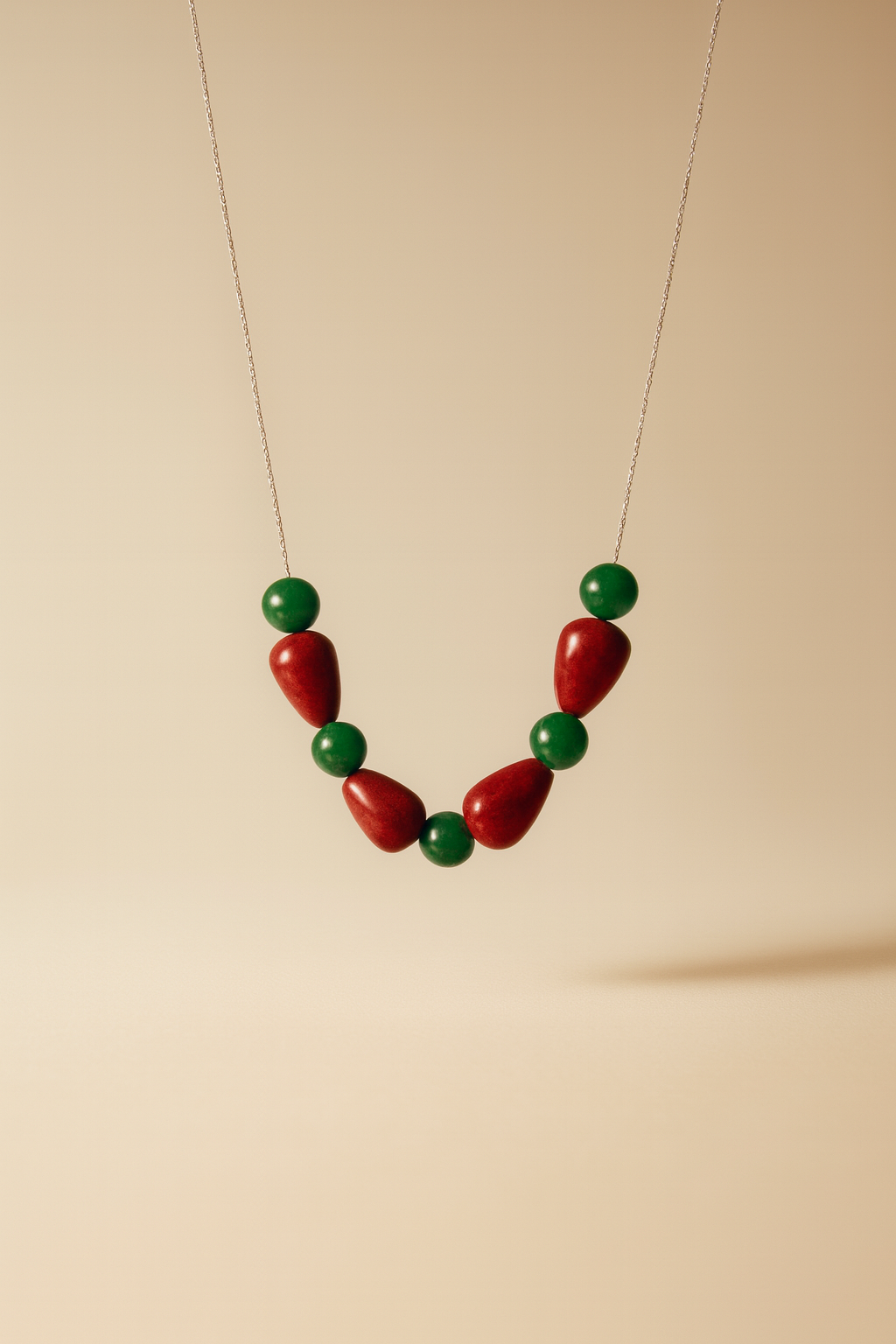 'Ritual de Sărbătoare' aduce împreună două nuanțe simbolice, verdele profund și roșul intens al jadului, într-o compoziție care respiră căldură, armonie și bucuria momentelor celebrate cu sens.