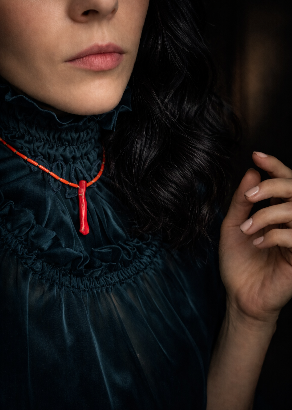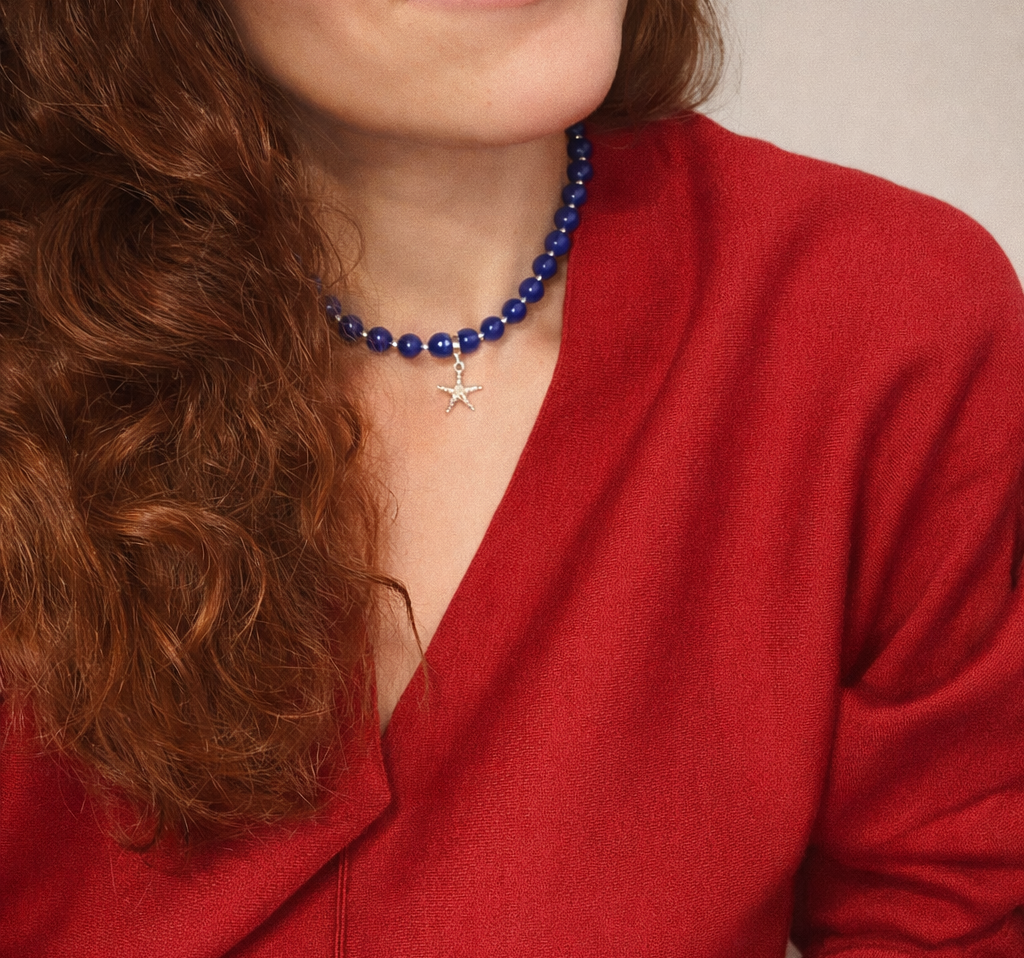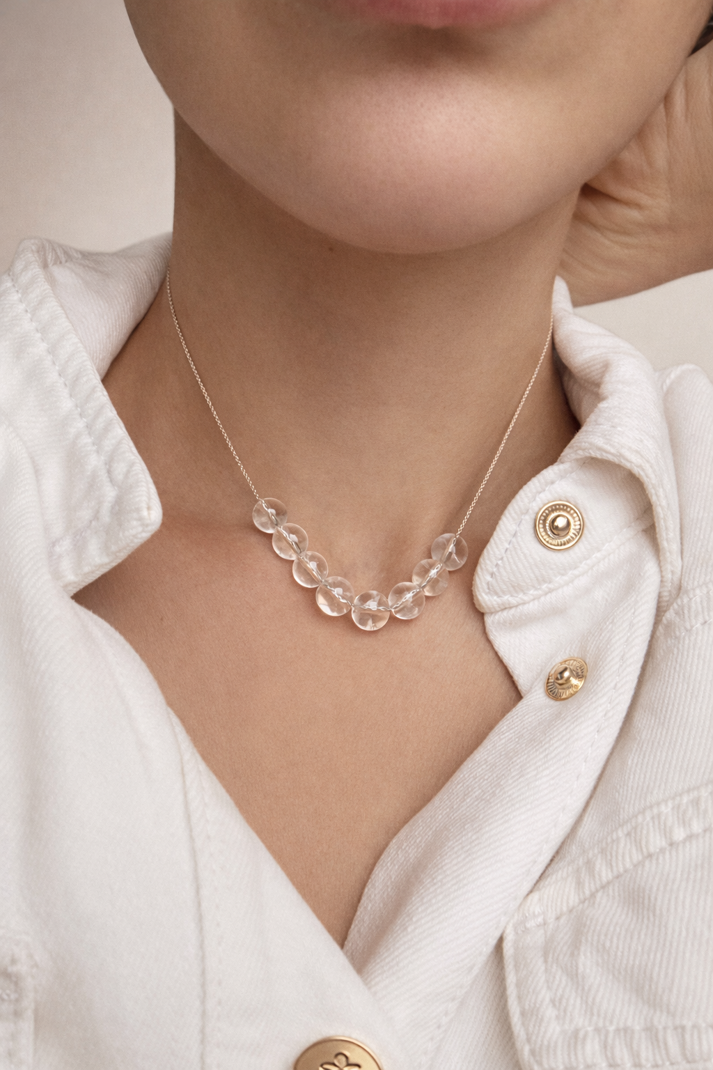 Un colier ce vorbește despre dualitate, rafinament și puterea detaliilor, ideal pentru femeia care apreciază simplitatea cu sens și contrastul care pune în valoare frumusețea naturală.